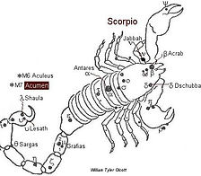 * Acubens, Marslı bir doğaya ve Satürn etkisinin güçlü bir karışımına sahiptir ve çaresiz, dengesiz ve "ürkek" bir doğayı yansıtır. Haritanın etkilenen kişiler için uyumsuz olabilir.